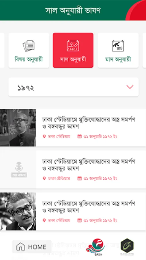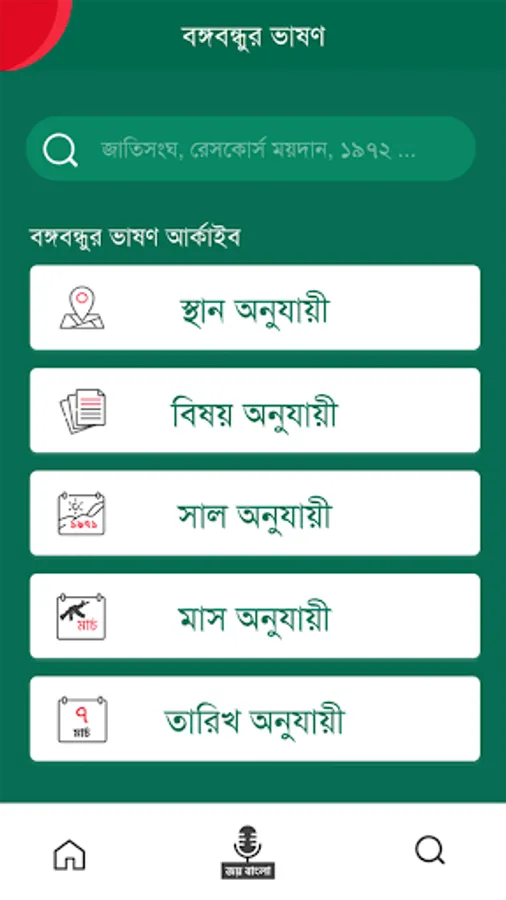 Joy Bangla Application is a compilation of all the speeches delivered during the lifetime of Bangabandhu Sheikh Mujibur Rahman. In his speech, Bangabandhu gave many orders, instructions and advice to the people of the country, to build the country and society. Speech in this application is divided into 5 parts. A user can listen to the speech according to the place, subject, date, year and month etc. Joy Bangla application will be helpful to highlight the speech of Bangabandhu Sheikh Mujibur Rahman to the people of the country and abroad.