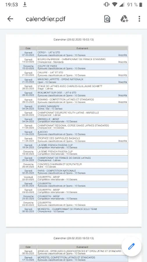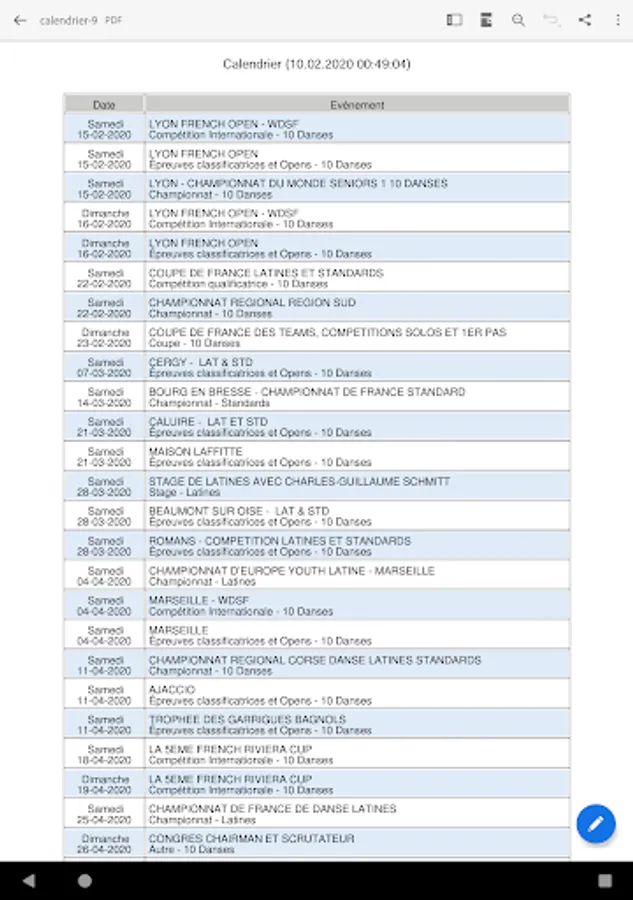 - a pdf version of the calendar containing hyperlinks to the official events pages of the calendar of the French Dance Federation website