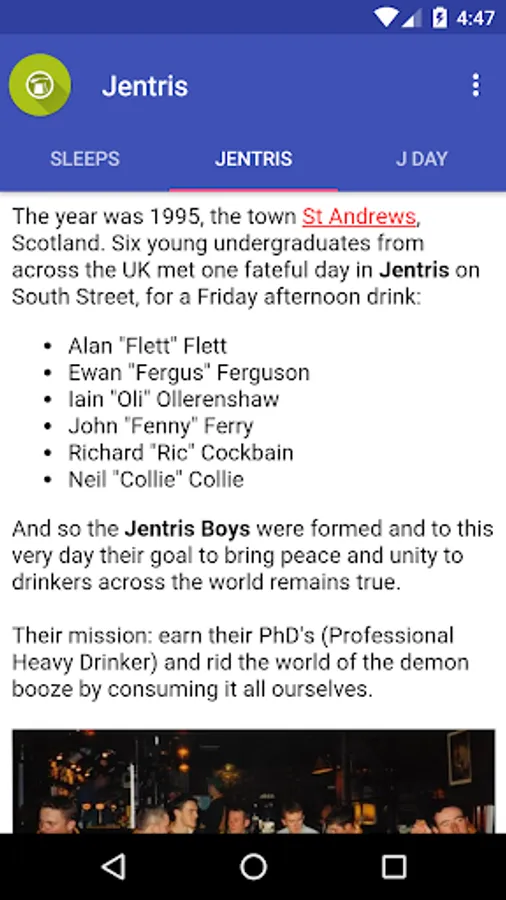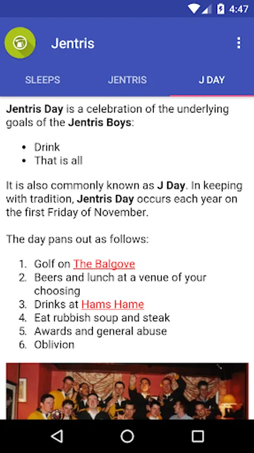 "Jentris" is a small, simple app to remind you of how many sleeps it is until the next Jentris Day and to give you some background information.