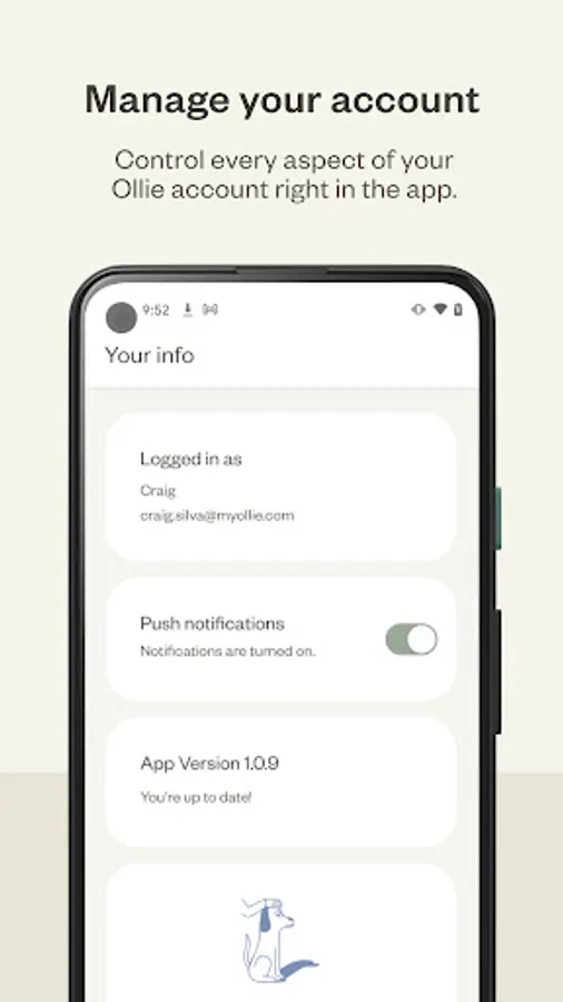 You can now change your password, update your delivery address, manage your notification preferences, faster than ever with the Ollie member app.