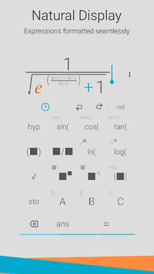 + Just like a physical calculator, input fractions and indices as they would be written on paper, with the numerator above the denominator