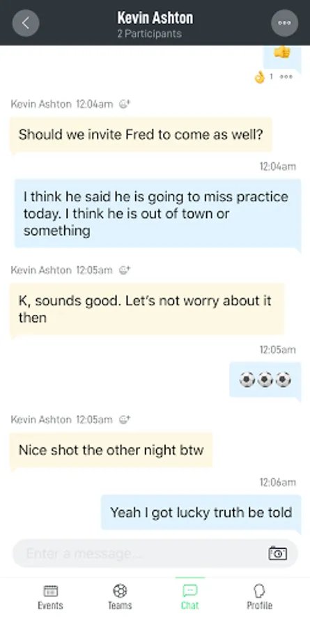 * Keep players, parents, and coaches in the loop with group chats all within the app. Our chat allows teams, parents, and players to communicate in a team chat channel and also has a directory so you can easily lookup and send custom messages to any individual or group within your club.