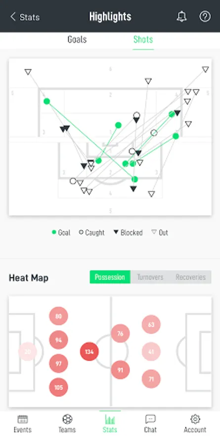 * A simple interface lets anyone capture important statistics like possession %, passes, turnovers, recoveries, and even where each shot was placed.