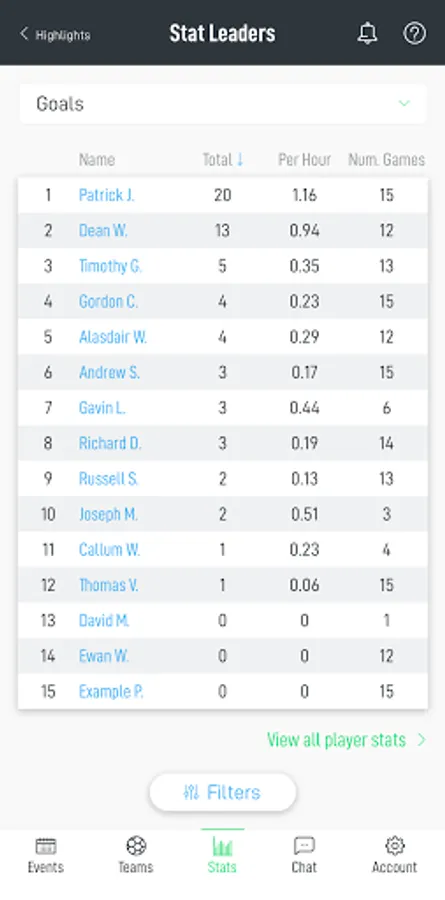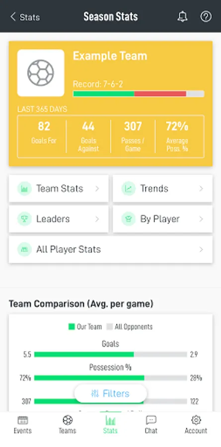 * Team stats help you understand how your team is performing against your opponent and over time.