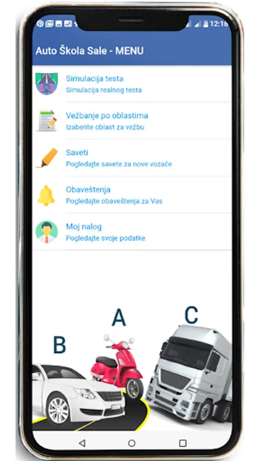 The application is intended for practice tests for students of auto school "Sale". Users who do not have login data can only do the "Trial Test". The application contains questions for categories A, B, C.