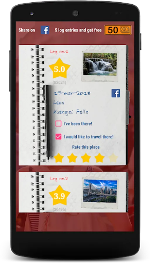 Easy rules, beautiful, friendly interface, custom achievements, global leaderboard of travelers, travel log with ratings. Easy facebook sharing of achievements and photos from traveler's log.