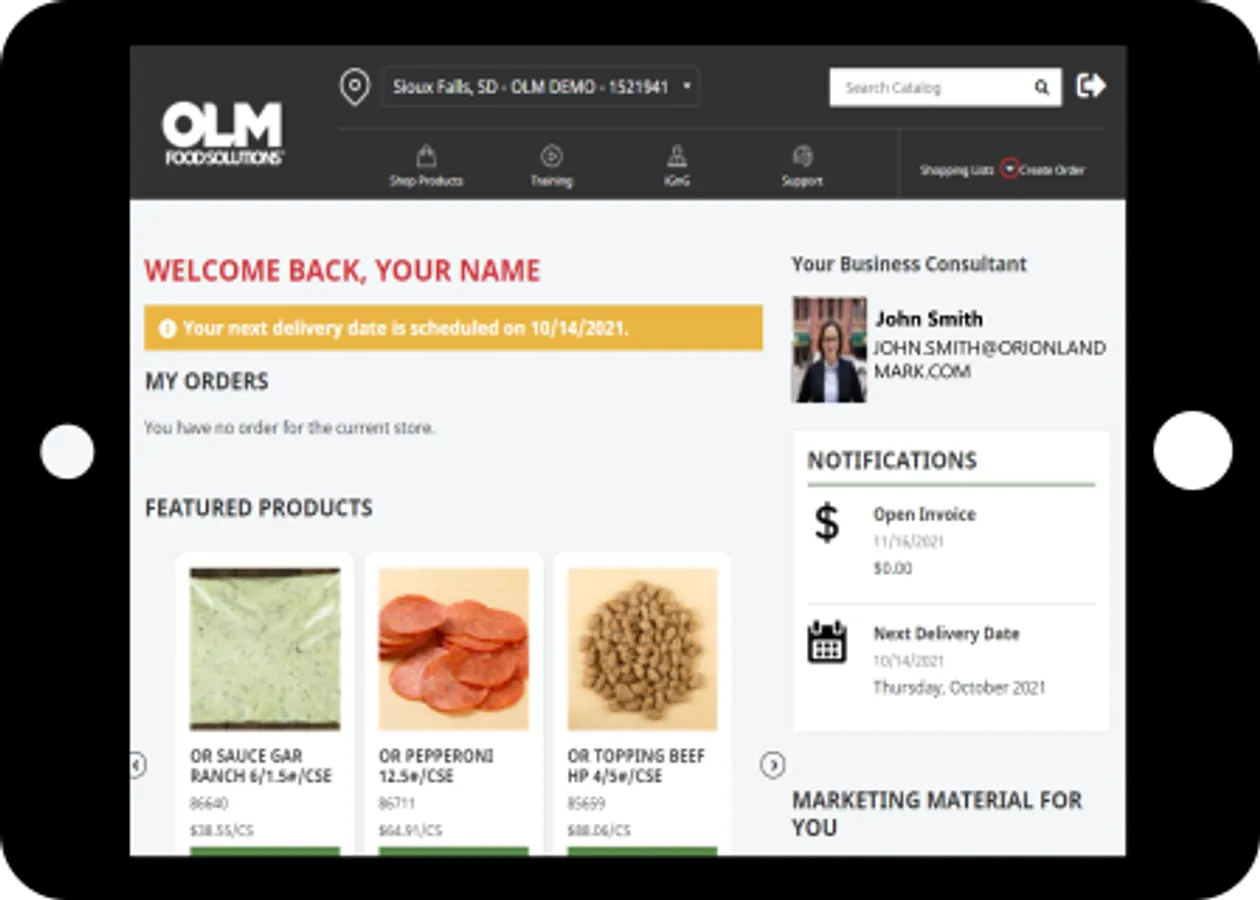 The new Shop Products feature is your easy, modern way of ordering all of the food and supplies you need to run a successful operation. You can use the Customer Portal to place weekly or bi-weekly orders with OLM.