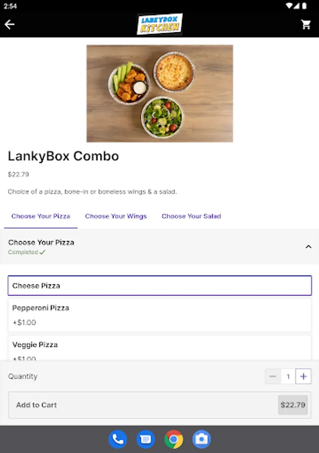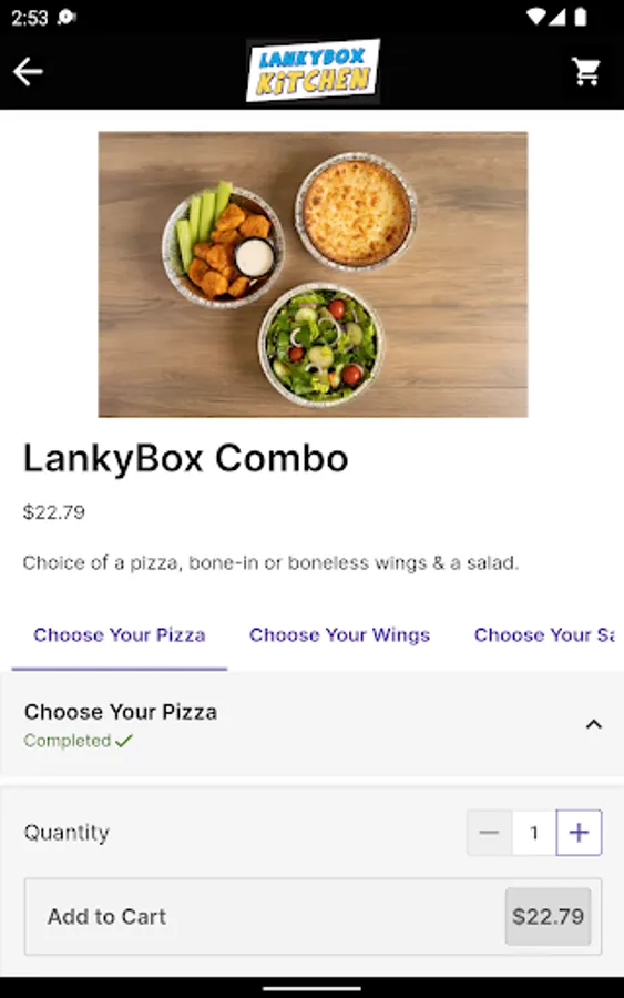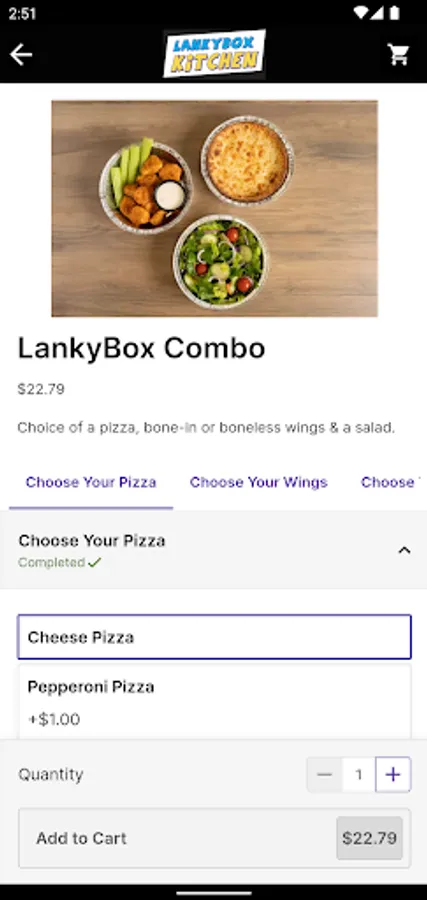 Choose from Lankybox Personal Pan Pizzas including traditional cheese topped with pizza sauce and mozzarella cheese; the Veggie with mushrooms, onion, green peppers, cherry tomato, and mozzarella; and the fan favorite pepperoni pizza .