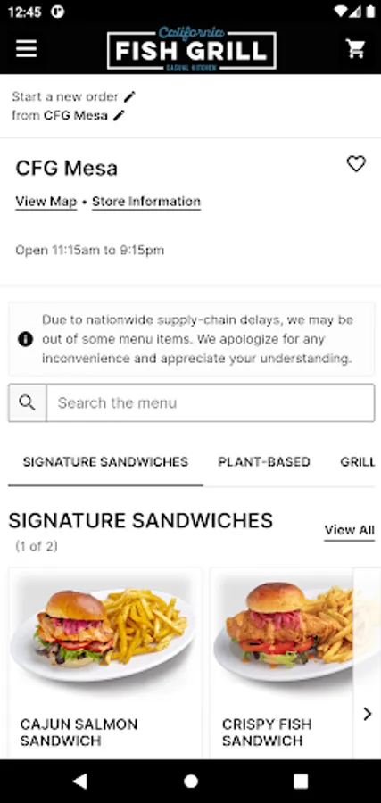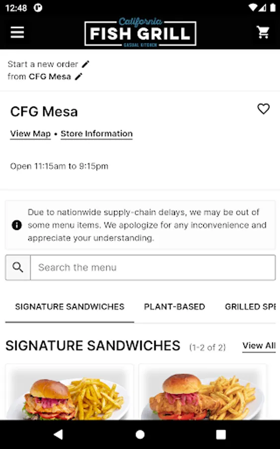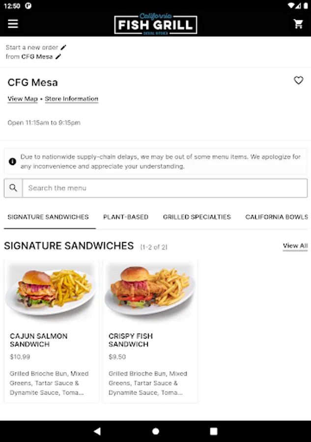 With the California Fish Grill app, conveniently order from the menu, pay in advance and/or request delivery. Receive special offers & updates on new sustainable entrees & seasonal dishes. Place an order and skip the line when you pick up with Express Pick-Up or order delivery direct to your door.