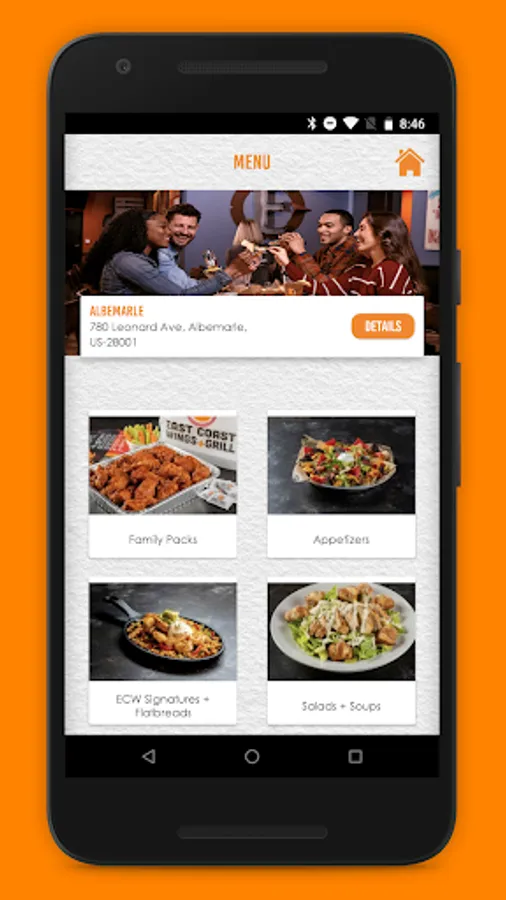 Order East Coast Wings + Grill on the go! Select from a large variety menu including burgers, flatbreads, skillets, salads and 60 flavors of Buffalo style chicken wings that can be mixed in 7 different heat indexes ranging from Mild to Insanity.