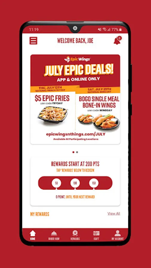 - Personalized Account: When creating your Epic Wings account you will be able to save information like your favorite location, delivery address, recent orders and favorite orders for a quick and easy ordering process.