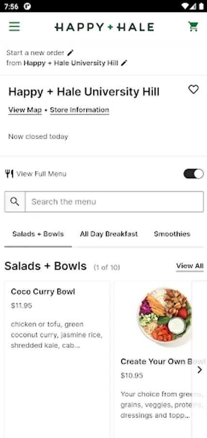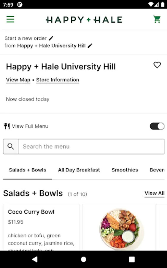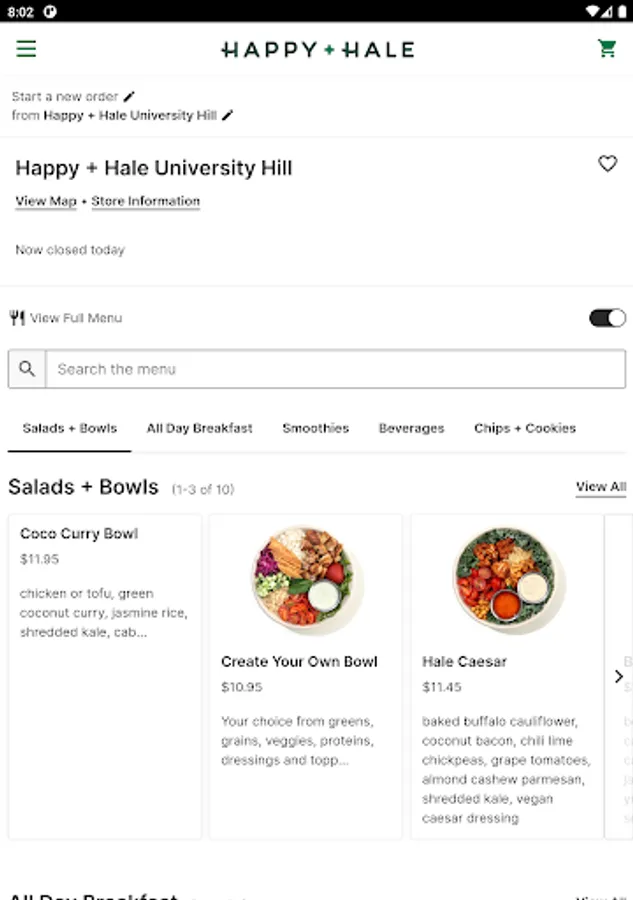 At happy + hale, we believe that healthy = happy. We produce healthy fuel that nourishes the body, fulfills the soul, empowers the community and balances the planet. Chopped salads, hearty protein bowls, smoothies and more. Place your order for bicycle delivery (within delivery radius) or no-wait pick-up.