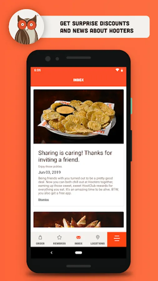 Want to take it a step further? Invite your friends to join HootClub and you’ll be rewarded with a free appetizer for each friend that signs up after they make their first purchase.