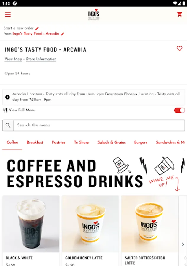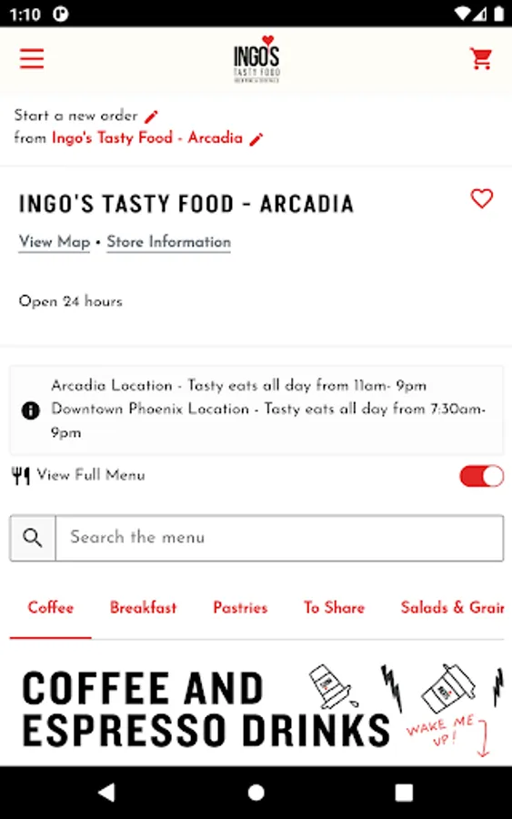 Tasty Food All Day, Every Day. Starting with the freshest and most premium ingredients, Ingo’s Tasty Food believes everything should be made from scratch daily, with love of course. Our menu features sharables, mains, all day breakfast, and signature coffees, teas and boozy beverages to complement your meal. We take pride in serving the community the very best quality, including domestic-raised grass-fed, grass-finished beef (Never EVER any hormones or antibiotics) and local LGO Bakeshop’s (our sister restaurant) handmade baked goods and breads. The fastest way to our heart, order now and skip the line at any of our locations. Make your selections and select a time and we’ll have it ready for you to pick up in-store or curbside, your choice! It’s that easy. Download the Ingo’s Tasty Food App and explore the features: Store locations, hours and address Select your experience: Curbside or Delivery Browse our tasty menus with ease Quick and easy checkout - your favorite items will be stored with love Stay in the know with Ingo’s Tasty Food specials and event updates