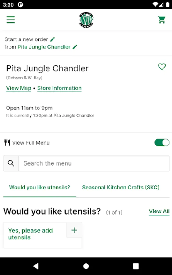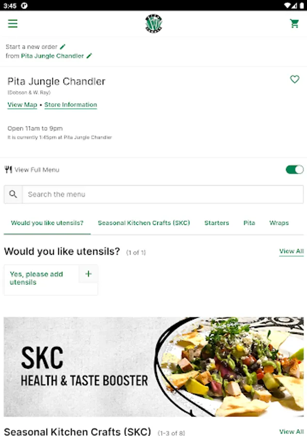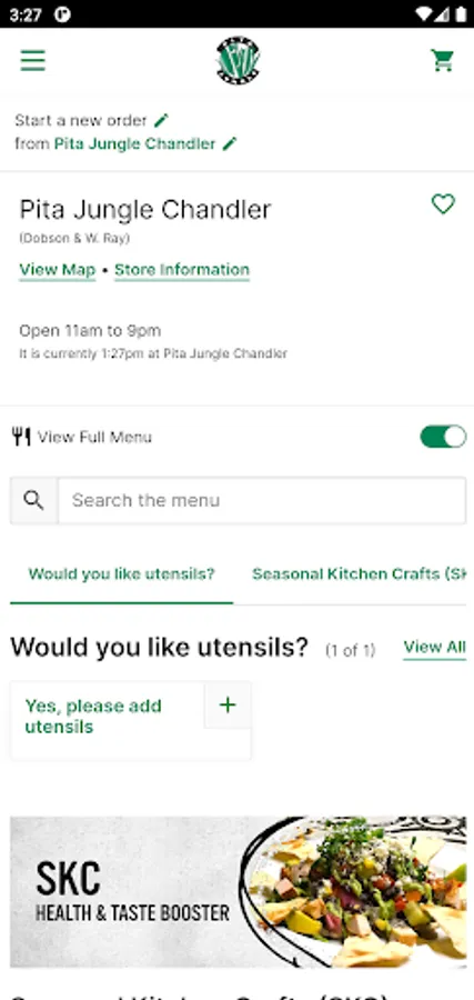• Food truck: Locate or place pick up orders from the pita jungle food truck closest to you