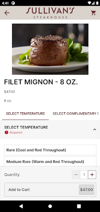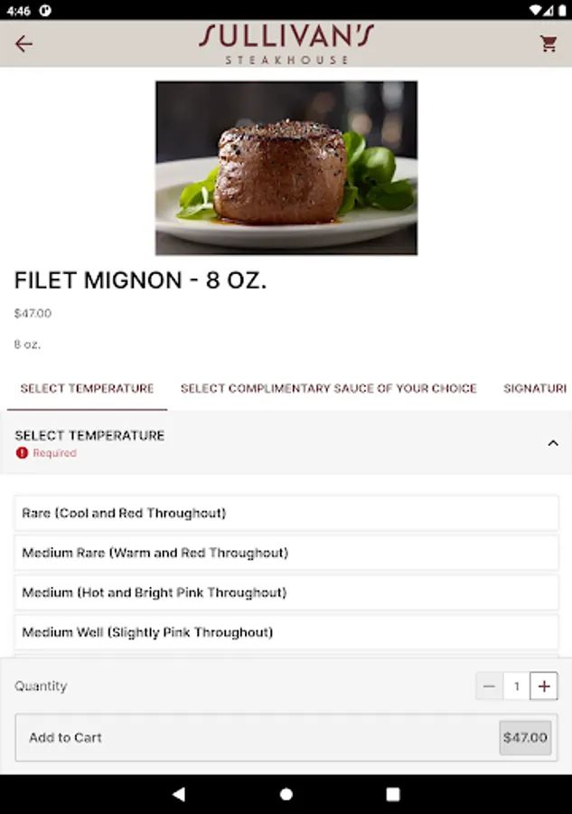- Order your steakhouse favorites directly from your phone