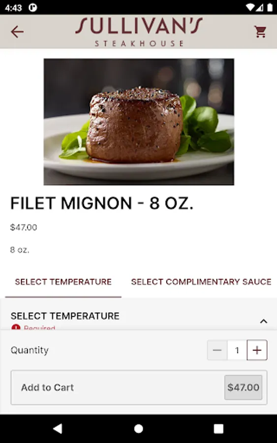 The Sullivan's Steakhouse app is a fast and convenient way to get your steakhouse favorites delivered to you or available for takeout from your local Sullivan's restaurant.