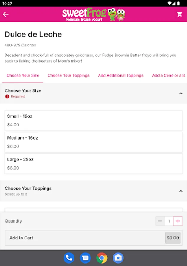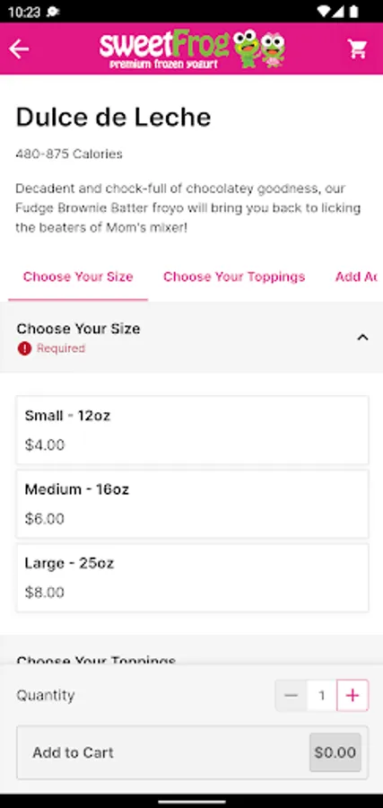 Welcome to sweetFrog® — where our goal is to create the best frozen yogurt experience you've ever had! You create your own combination of delicious, soft-serve premium frozen yogurt then finish it off with any toppings you choose. Our toppings bar is stocked fresh every day with the best ingredients for a light snack, a decadent dessert and everything in between.