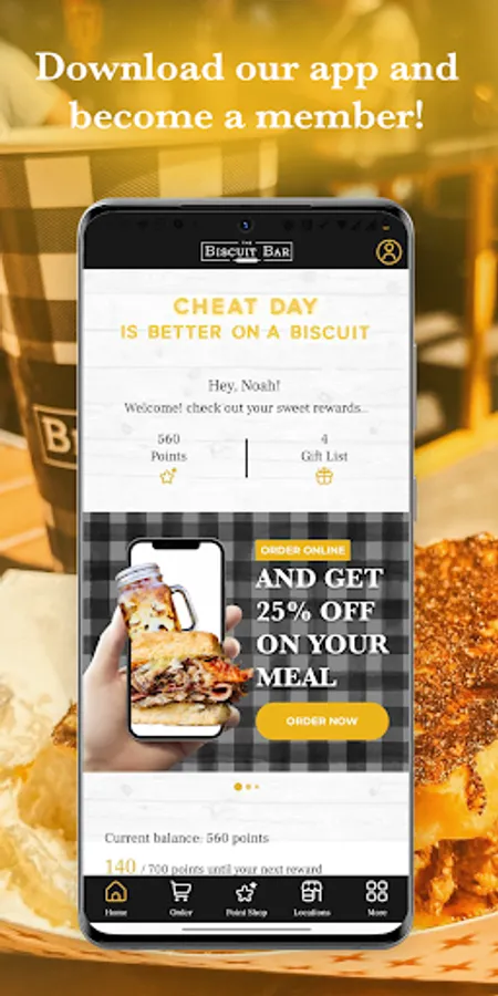 Order Southern goodness at your fingertips with The Biscuit Bar mobile app, plus join our brand-new loyalty program to earn and redeem points on all your favorites!