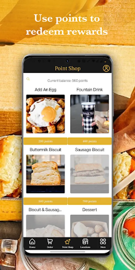 • Redeem points for your favorite biscuits, tots, taps, and more.