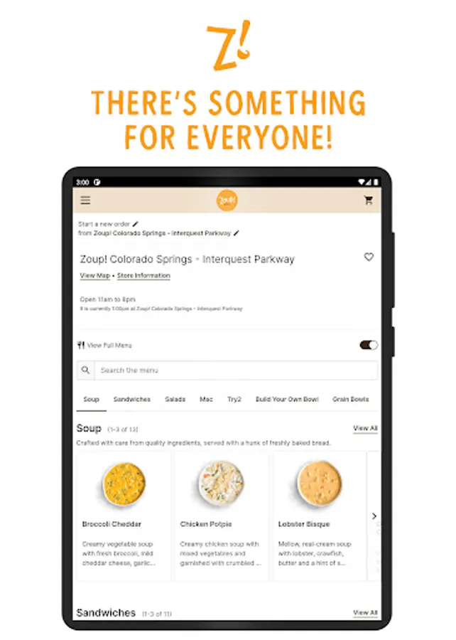 · Find locations, see the menu - discover a nearby Zoup! Eatery, see a map and browse the menu.