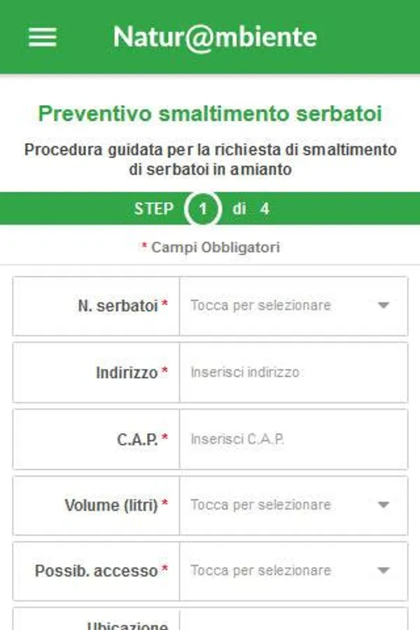 The App allows you to report the disposal of waste and asbestos tanks and request of budgets for activities.