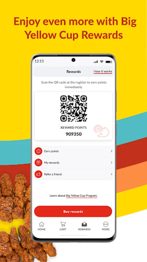 LOYALTY PROGRAM: Big Yellow Cup Club Rewards. Earn 10 points for every dollar you spend. Eat. Earn. Rewards.