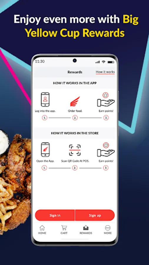 LOYALTY PROGRAM: Big Yellow Cup Club Rewards. Earn 10 points for every dollar you spend. Eat. Earn. Rewards.