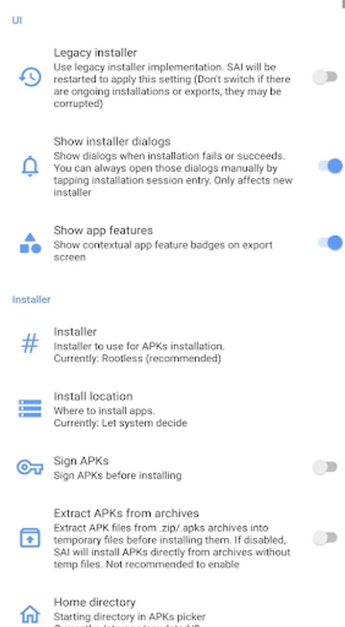 SAI is an advanced APK 2024 installer with split APK support. It also has simple app backup/export functionality.