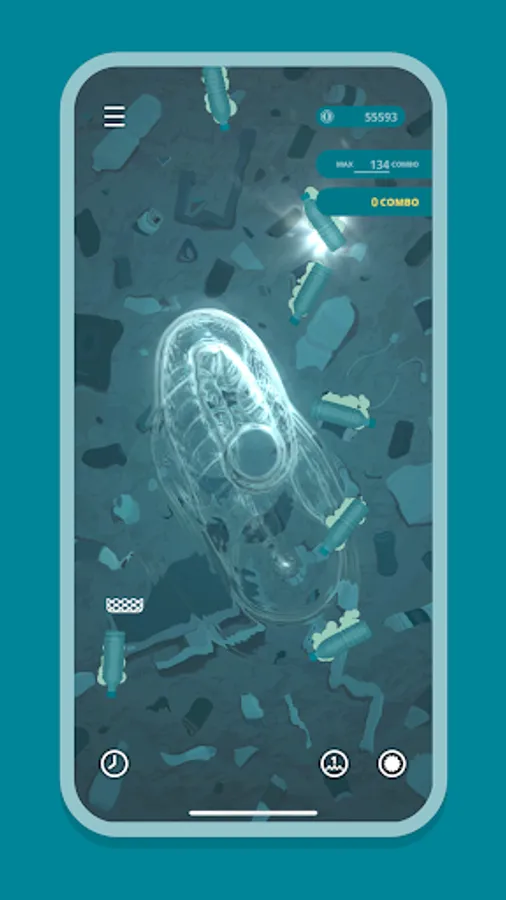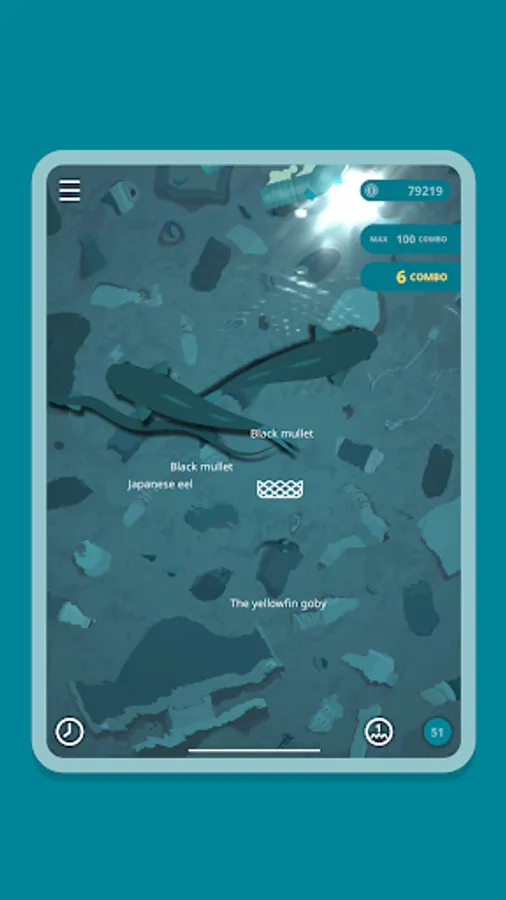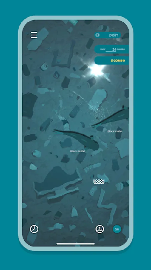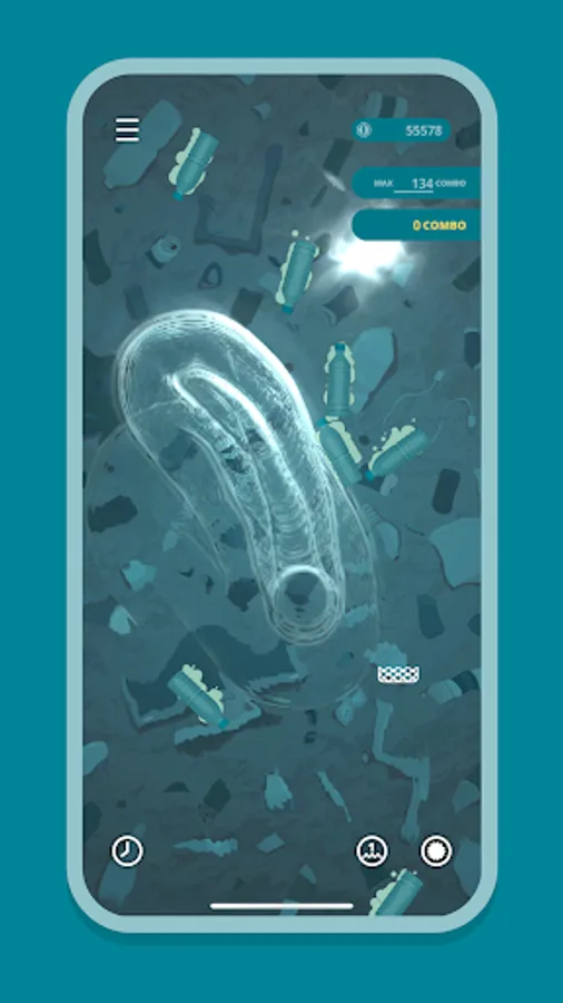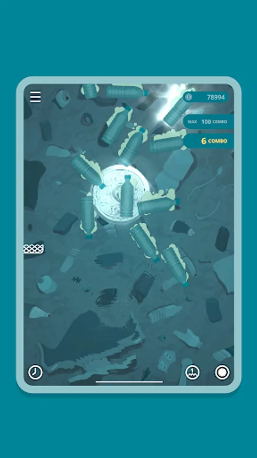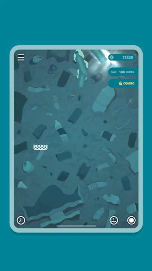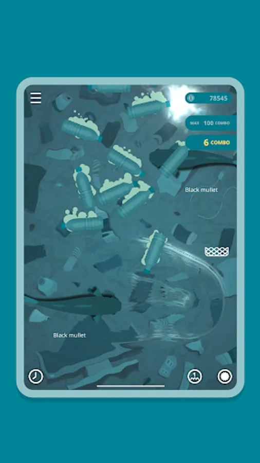 (2) Tap or swipe to create waves to move river litter to the white basket and collect it.
