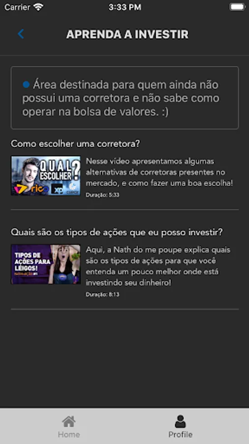If you don't know how to invest, we have a learning session, with a sequence of videos from youtube, to start the investment and search for financial independence.