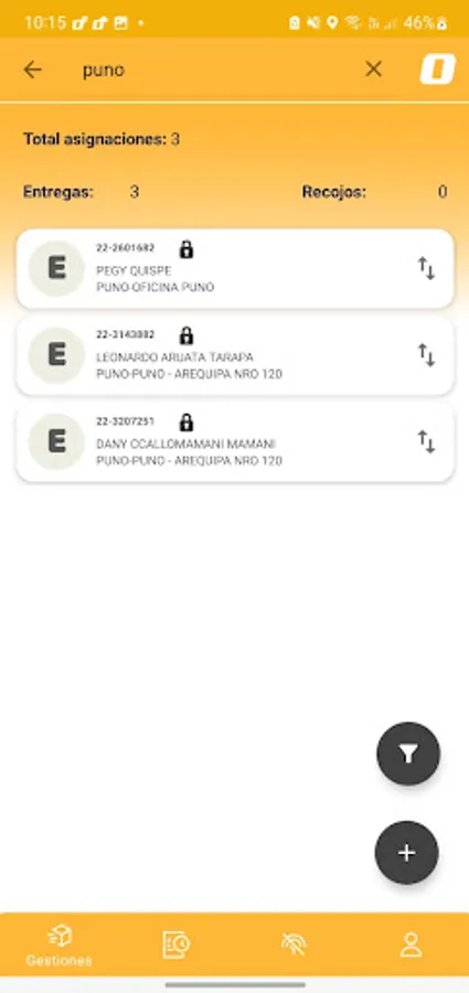 Confirm, Motivate and table of parts of Entreagas and Recojos