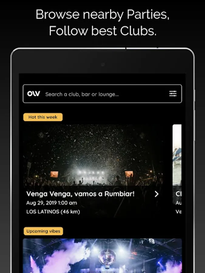 OLV is the Party mobile app reference in your City. Follow your favourite clubs events or simply find nearest ongoing party. GONNA BE LOUD!