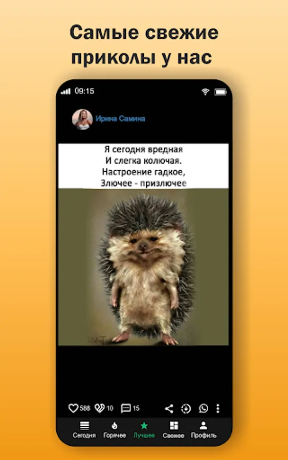 Giggy jokes - this is updated several times a day, a selection of funny videos and photos. Inside the application you will find a social network of people who appreciate high-quality humor. Almost all publications in the application are created by users.