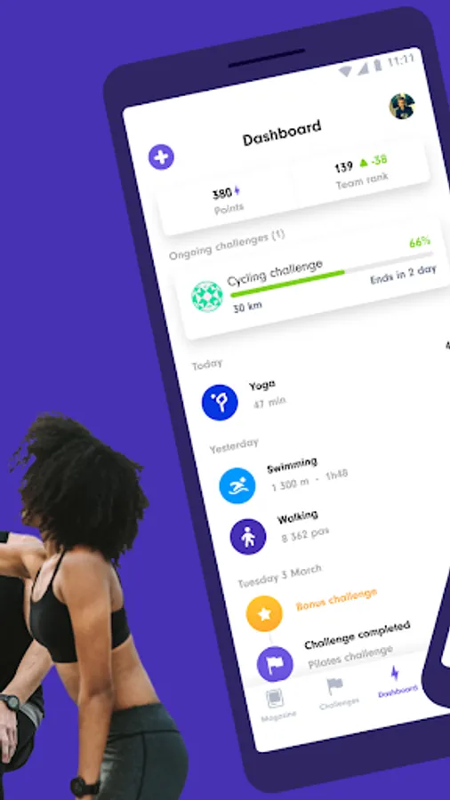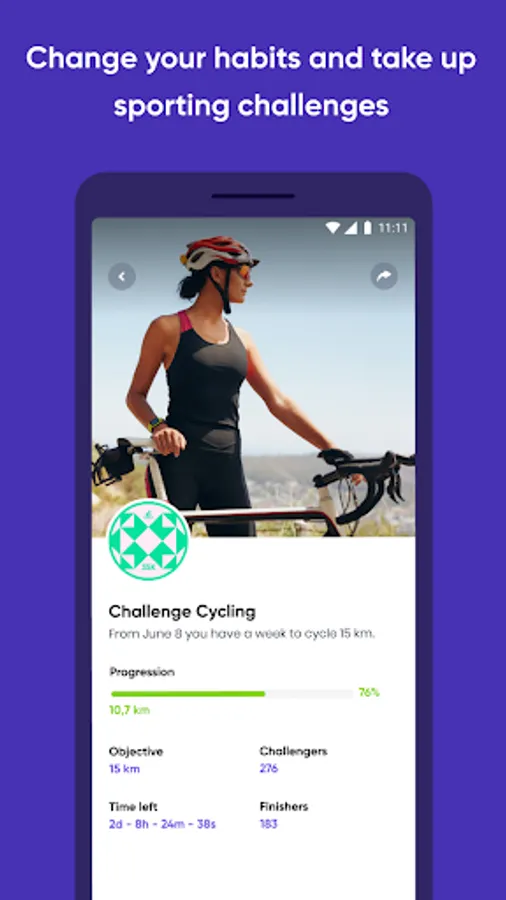 Alone or in a team, take part of monthly challenges to support a charity or to be motivated to be more active.