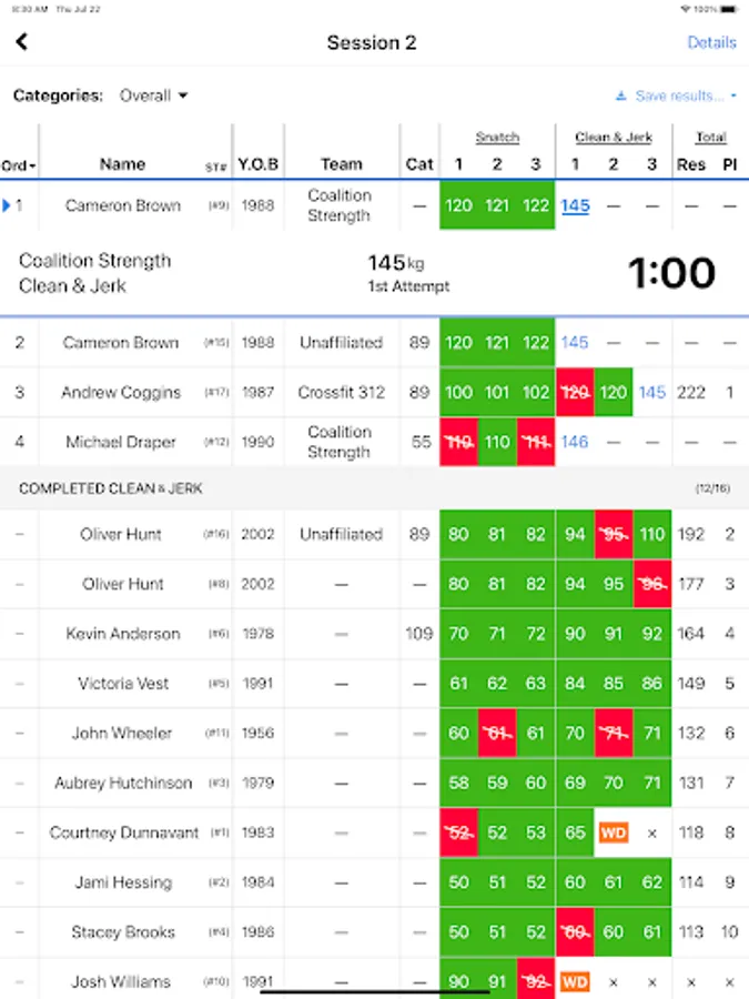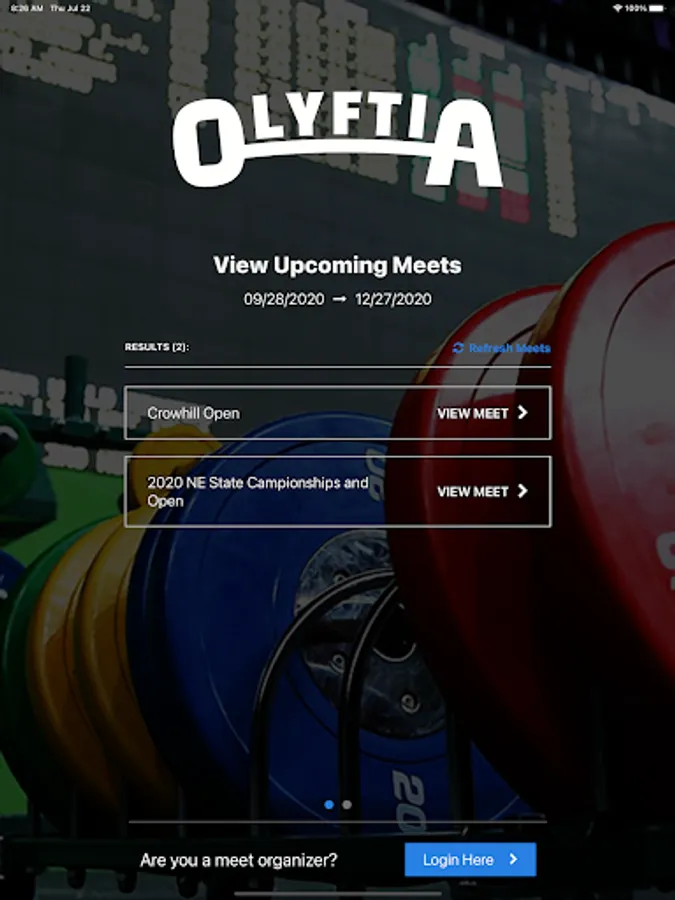 Olyftia is an Olympic weightlifting competition management system that eliminates the need for unnecessary and expensive equipment. Coordinate every aspect of your meet online from your laptop including lifting order, realtime scoreboard display, timing and judging.