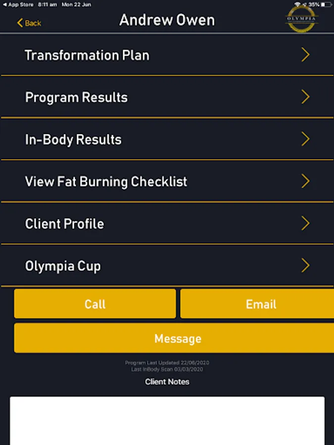 The Olympia Trainers app is aimed for Olympia trainers to help members achieve their health and fitness goals.