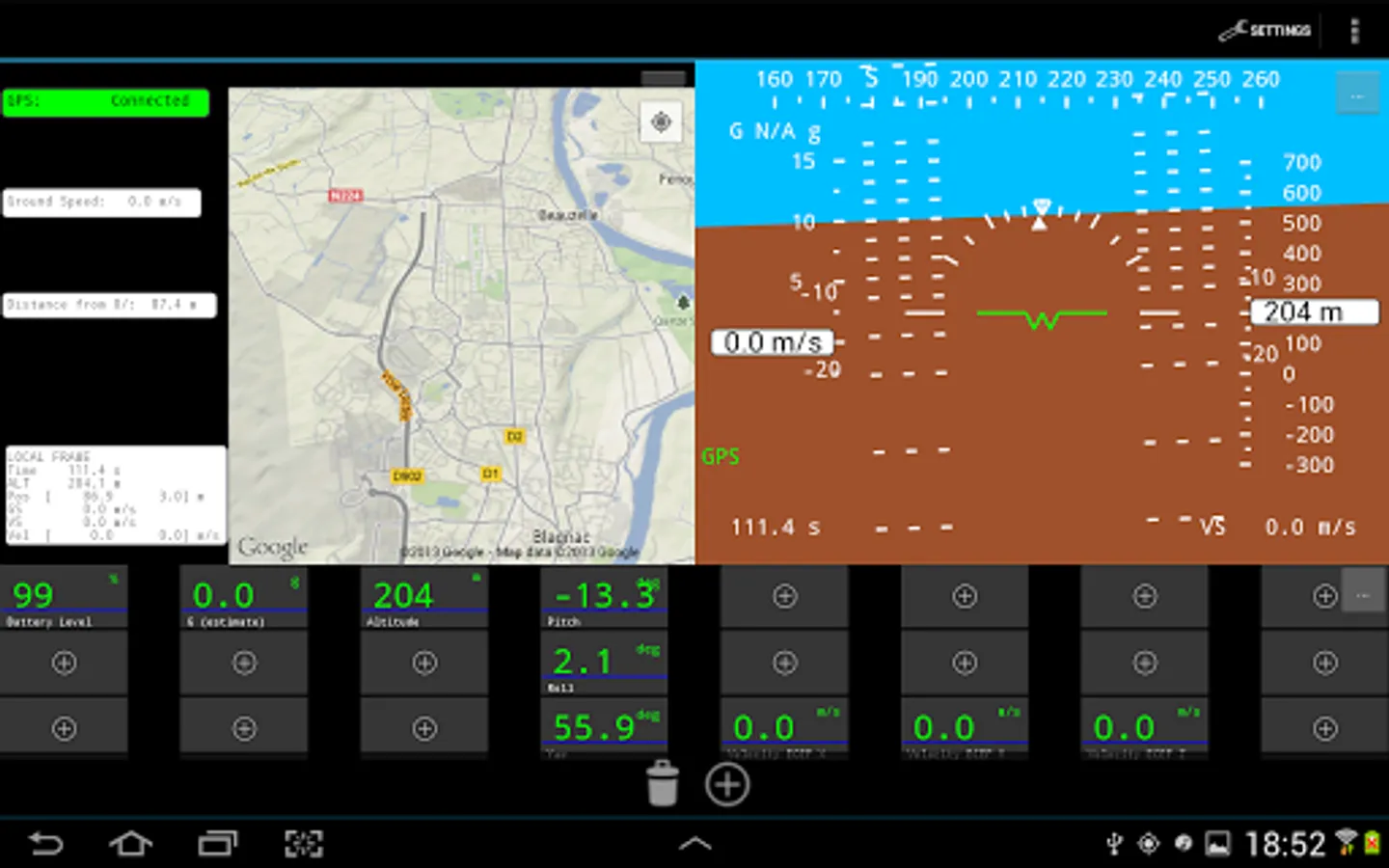 ✔ You can store real-time measurements and estimations into GPX file (GPS measures only), text files or, send these measurement over a wifi internal network with UDP, for post-processing (e.g. into MATLAB, SciLab, LabView, ...).