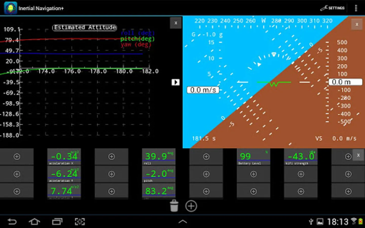 ** IMPORTANT ** : depending on your device, please consider going through the covariance settings for best estimation of the attitude! InertialNav may disregard the measurements if deemed unreliable. If YOU THINK the app does not use the gyroscopes, please CHECK the variance settings for the gyroscopes.