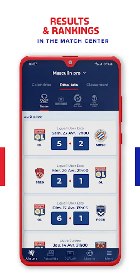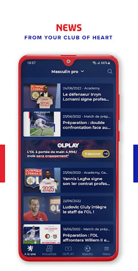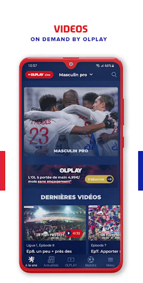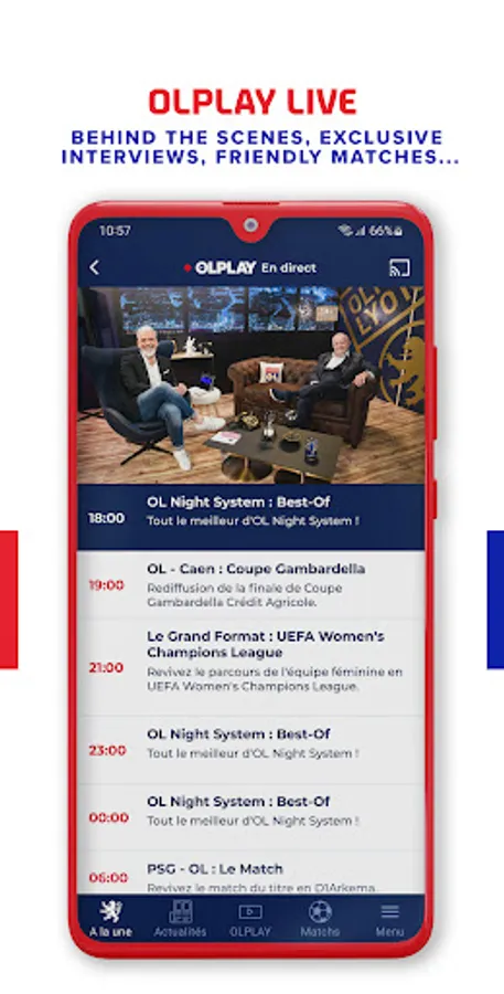 Dive headlong into the world of OL. With the free and indispensable VOD app, you can live out your passion for all things l’OL every day and enjoy a whole host of features: