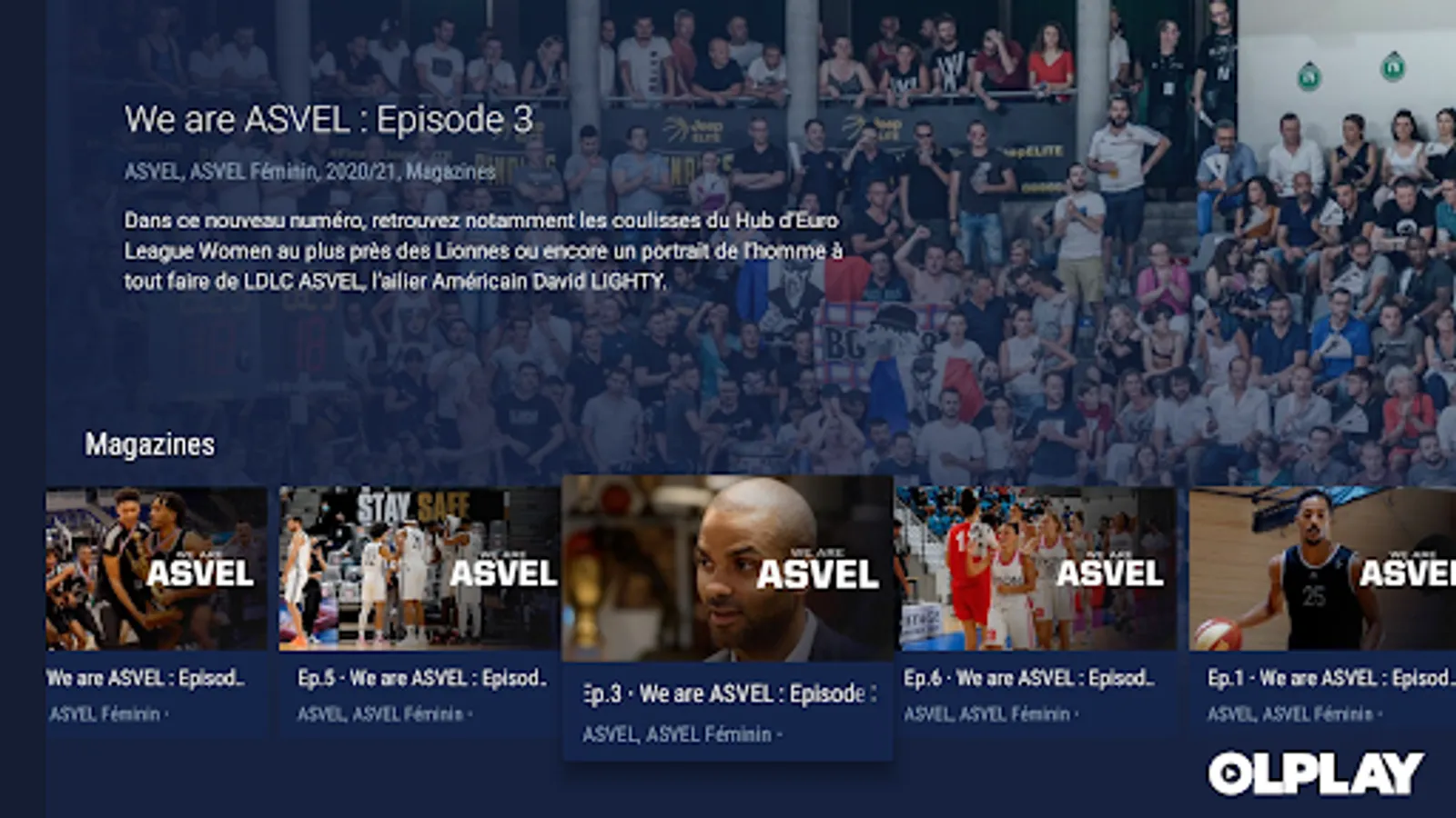 • Thanks to the OLPLAY Live channel and OLPLAY videos on demand, you’ll be kept right up to date about your club. OLPLAY is also the official broadcaster of all LDLC ASVEL’s Euroleague matches. Wherever you go, our OL VOD football app will be there with you.