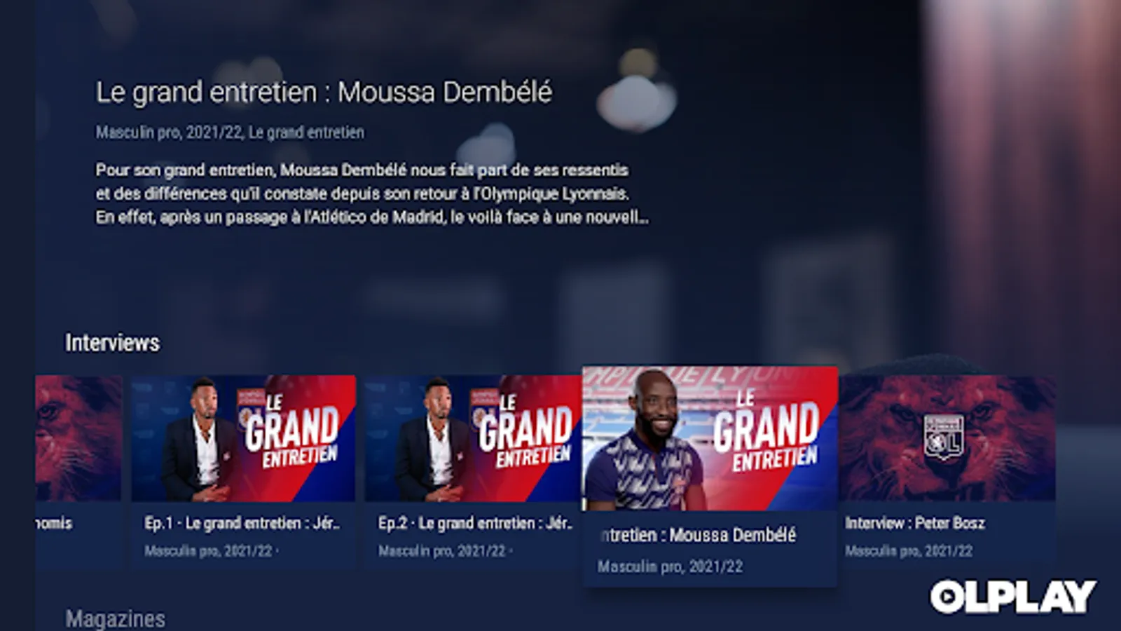 How about some Olympique Lyonnais VOD? OLPLAY is also a VOD app dedicated to football and l’OL. You can subscribe to OLPLAY and access replays and OLPLAY Live from your smartphone, smart TV or TV box.
