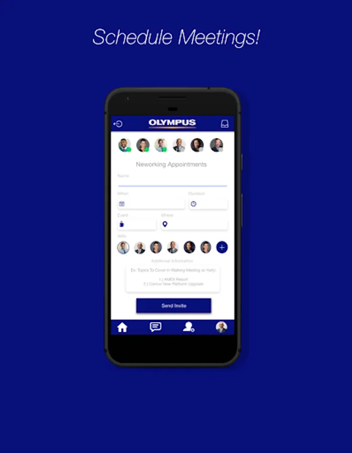 Networking Across Olympus is an application for Olympus Corporation of the Americas employees that aims to encourage people to explore new connections across the company. In this app, users can build profiles, send invites to colleagues who are part of the Networking Across