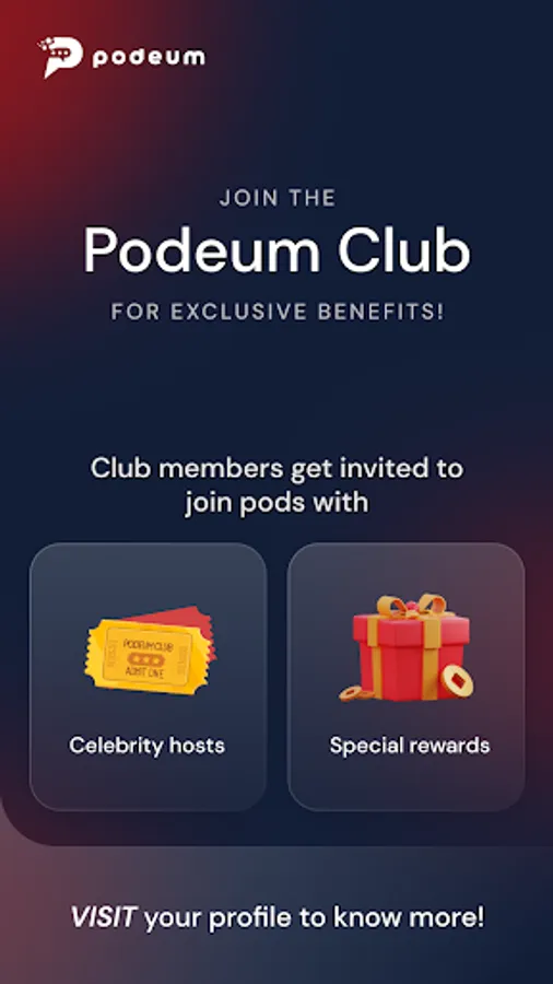 Users can enter the Club by unlocking 1 of 3 ‘medals’, which are awarded for creating, chatting in, and winning in pods. Entry to the Podeum Club gives users the chance to participate in exclusive, invite-only Pods with special rewards.
