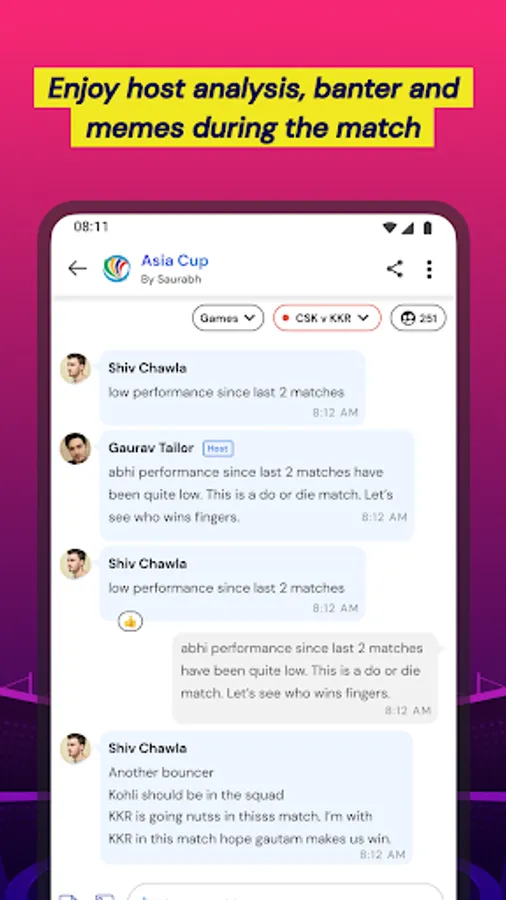 Play and host fantasy contests, prediction games, sports quizzes and more during cricket matches. Enjoy free social games with friends and fans and win big rewards! We’re building India’s best online community for cricket lovers - come join us!