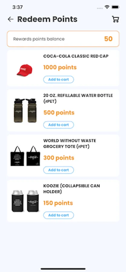 - Collect reward points and redeem them for Coke merchandise.