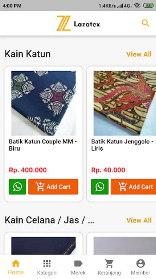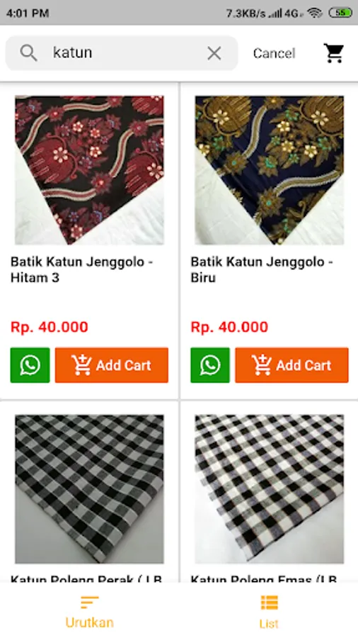 Penjualan Online Bahan Kain Celana, Jas, Katun, Decoflok, Bludru, dan melayani Seragam