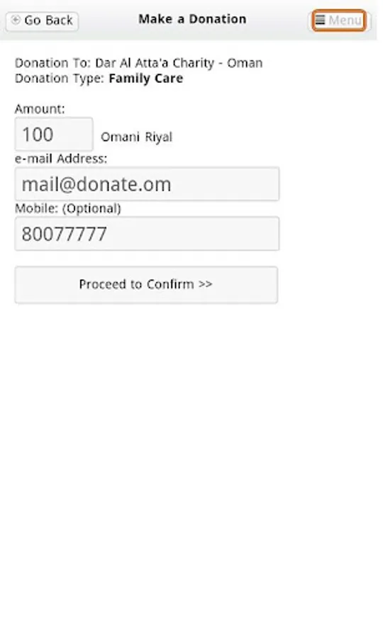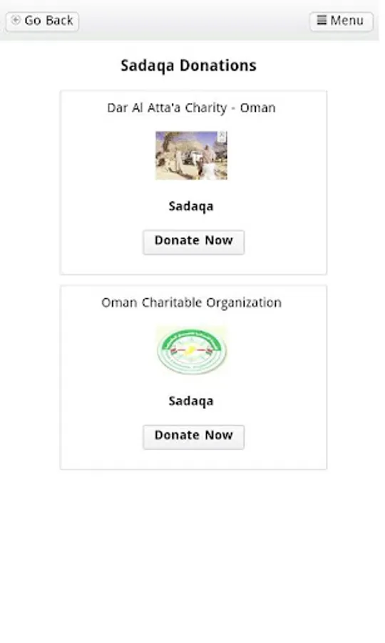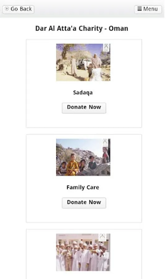The Donations App processes donations through credit cards issued in Oman and currently does not accept donations through any other cards.