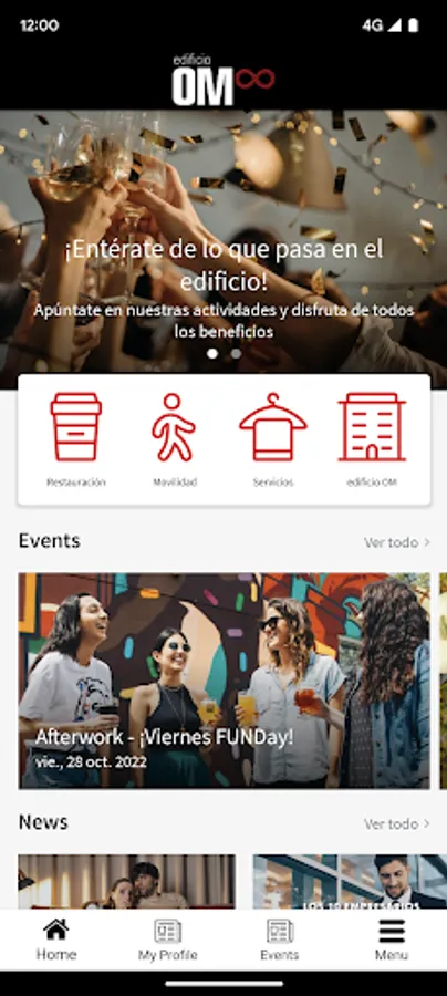 With the OM∞ building application you will have a series of services, offers and facilities to make your working day an experience.