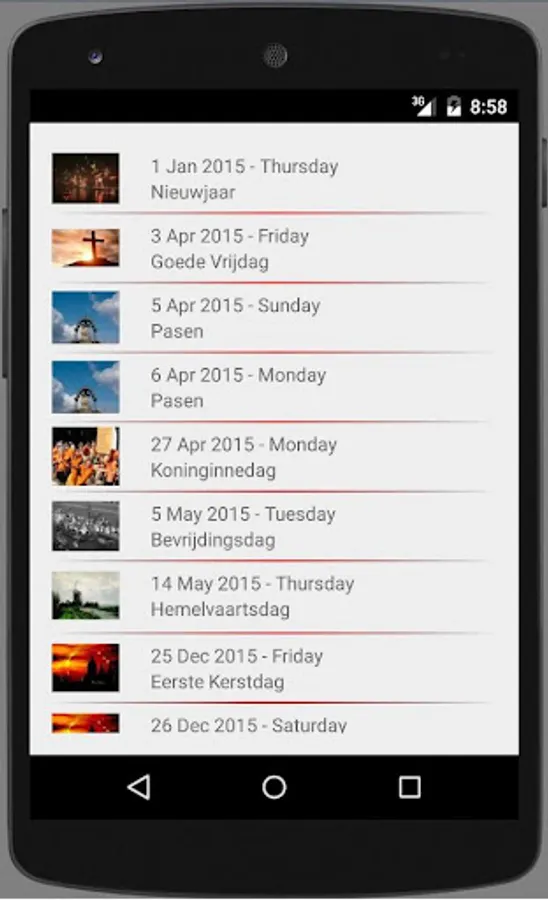 This application offers a stylish and neat interface of holidays in the Netherlands/Holland.
